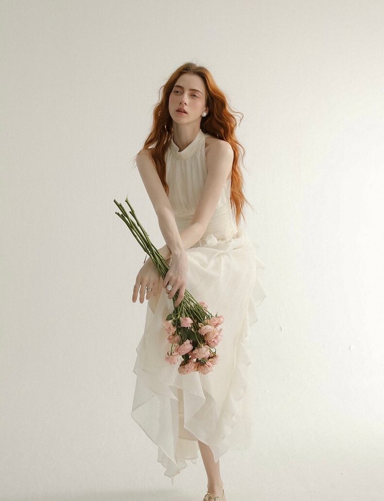 風に靡く柔らかいシフォン生地をたっぷり使ったワンピース。