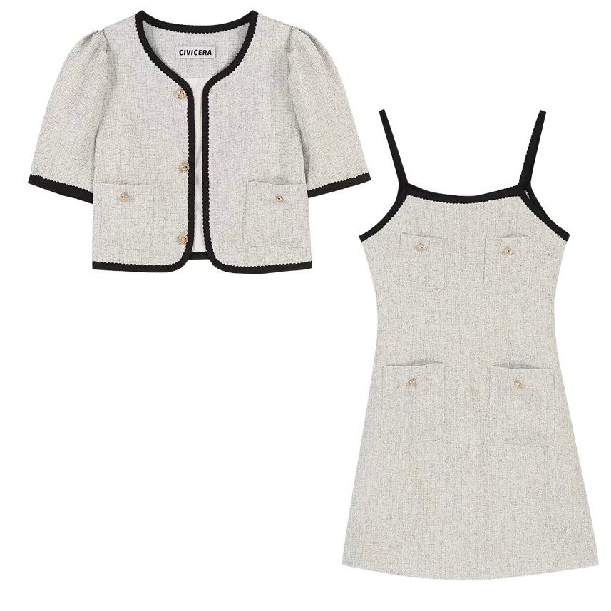 バイカラーワンピースジャケットセットアップ