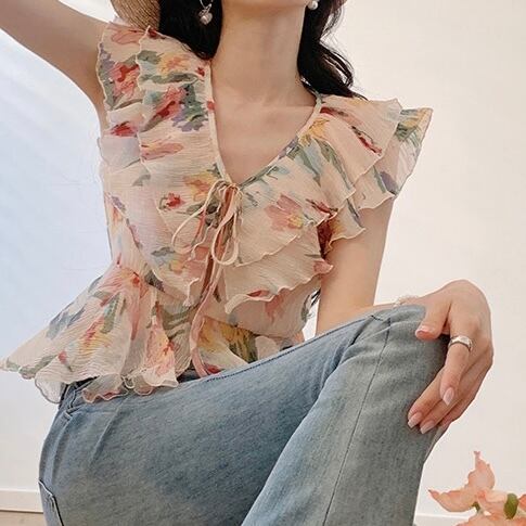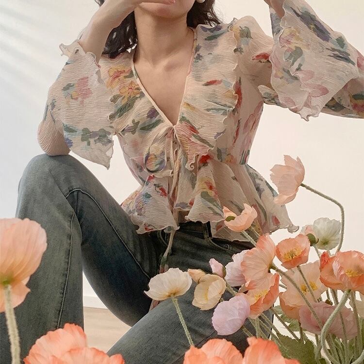 ロマンティックフリルフラワーブラウス(半袖/長袖)