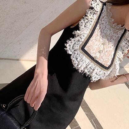 ロイヤルバイカラーレースノースリーブミニワンピース