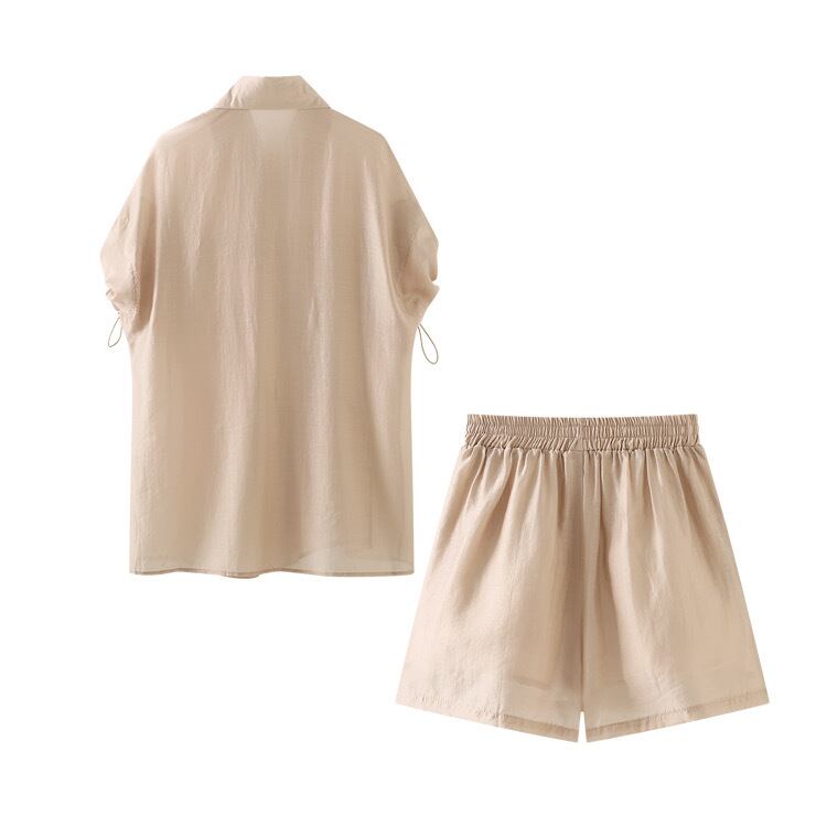 斜めボタンシャツ&ショートパンツパンツセットアップ