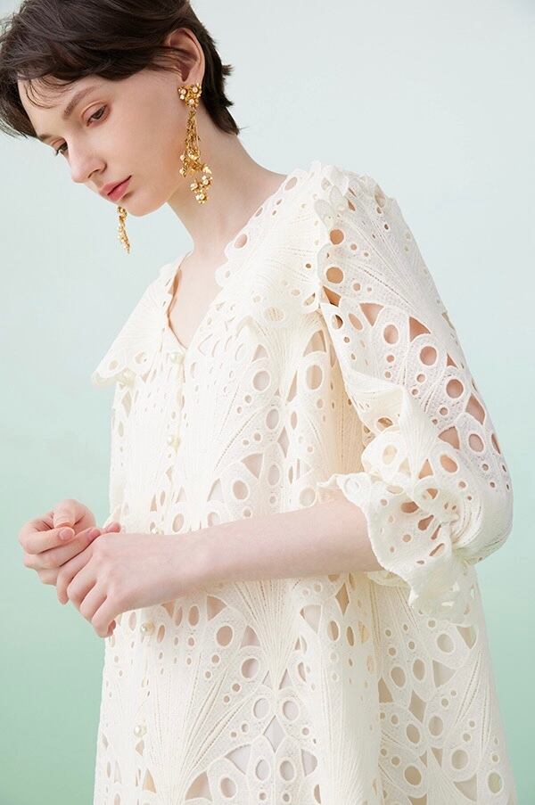 ランタンスリーブクラシカルレースミニワンピース