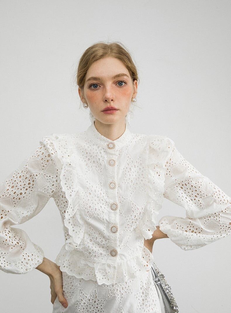 【残りわずか】エンブロイダリーパフスリーブフリルレースセットアップ