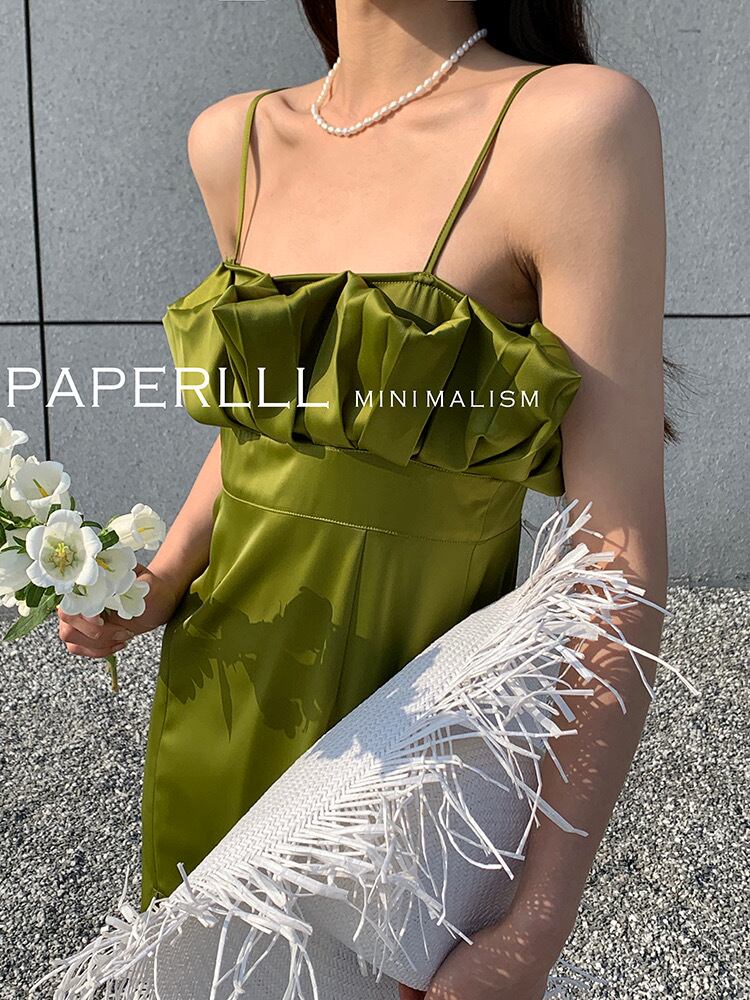 【残りわずか】サテンタックスリットキャミワンピース