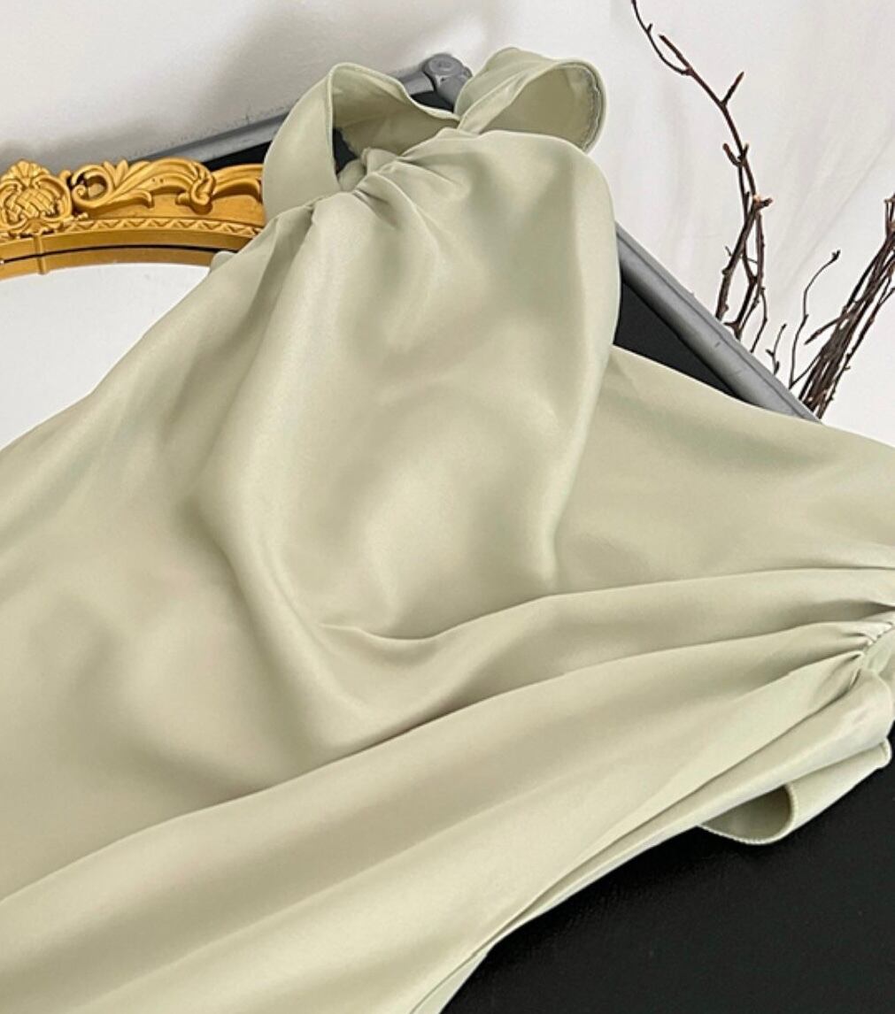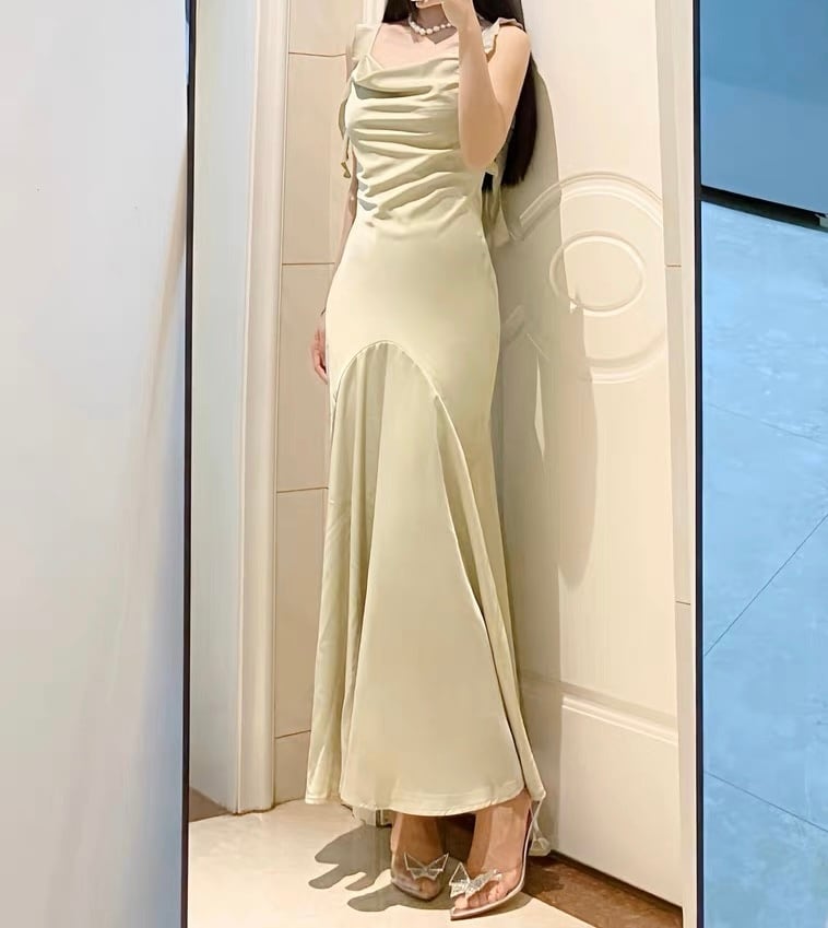 グリーンサテンマーメイドロングワンピース