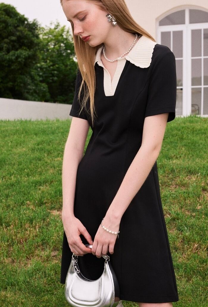 ポロ襟バイカラーフィット&フレアミニワンピース