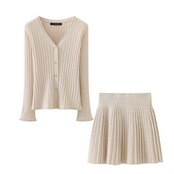 6カラー Vネックリブニットカーディガン&プリーツスカートセットアップ