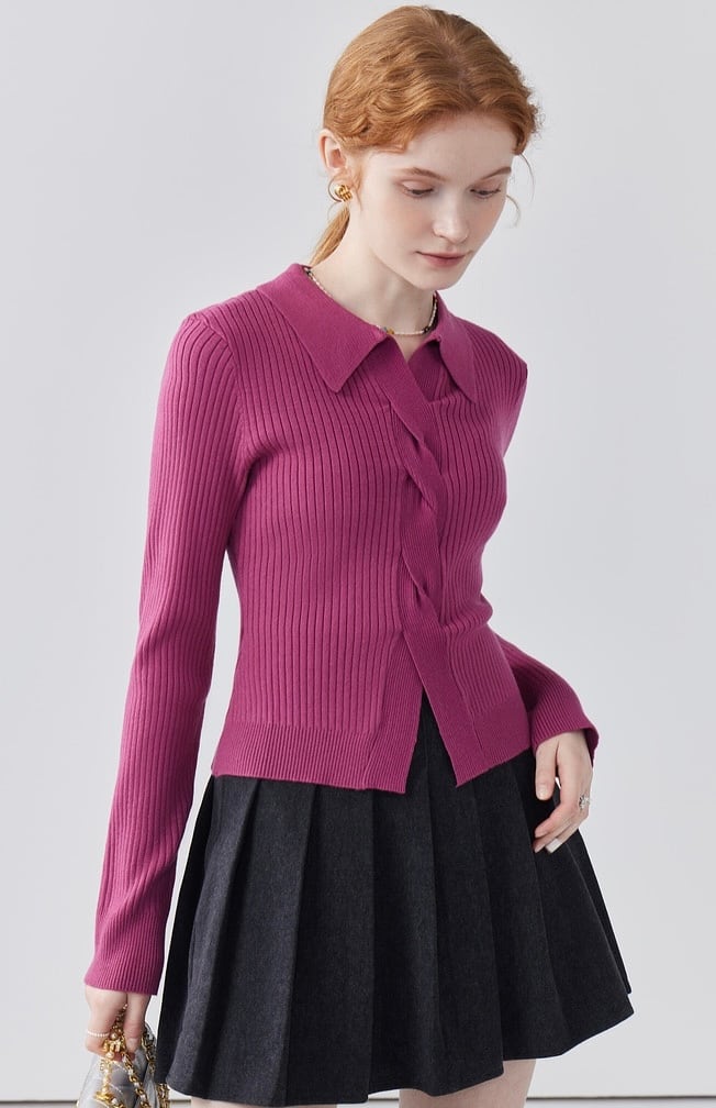 3カラー ポロ襟ニットツイストトップス
