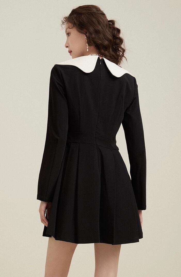 ダブルボタン変形カラーワンピース