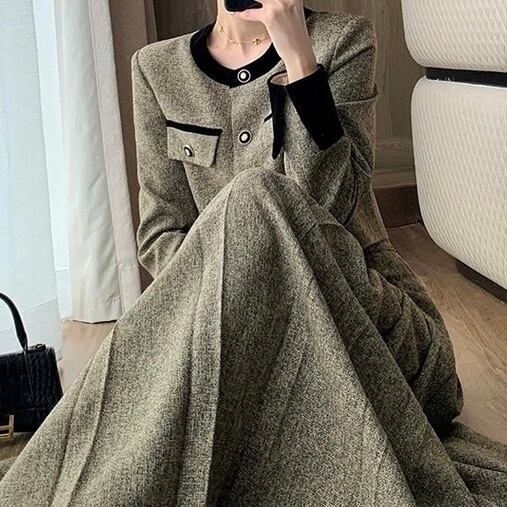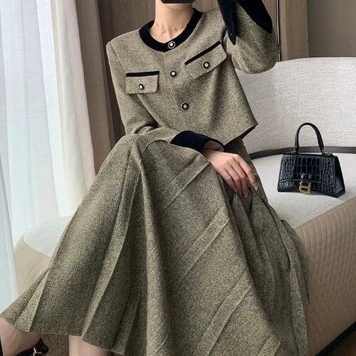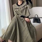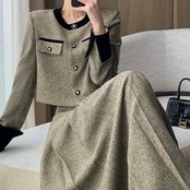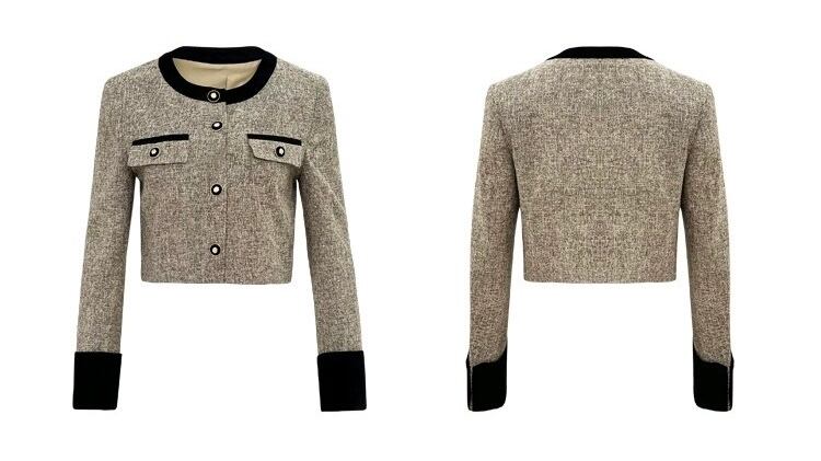 ノーカラーバイカラーブラウンジャケット