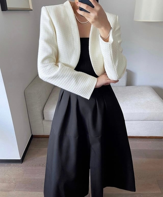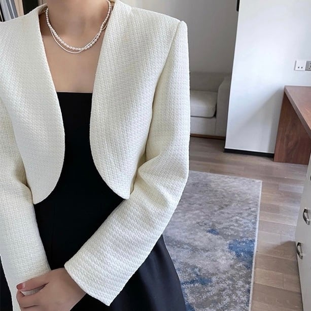 ノーカラーワッフルボレロジャケット