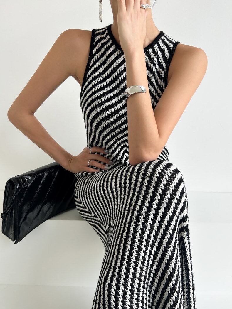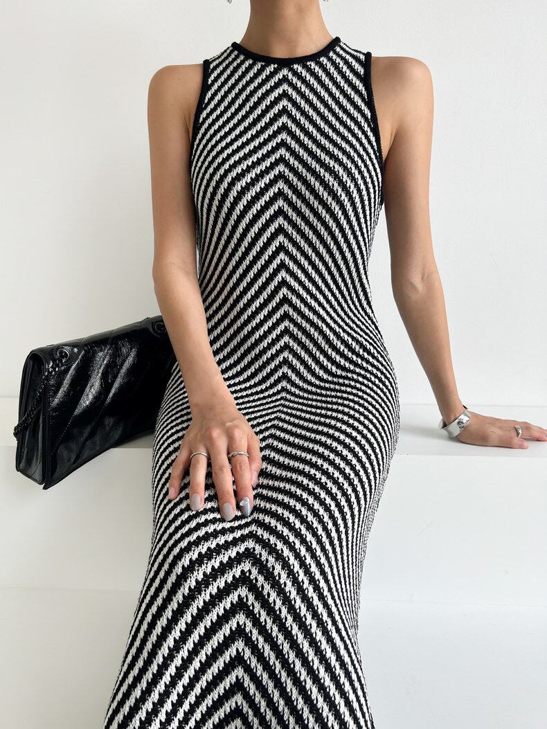 斜めストライプノースリーブロングワンピース