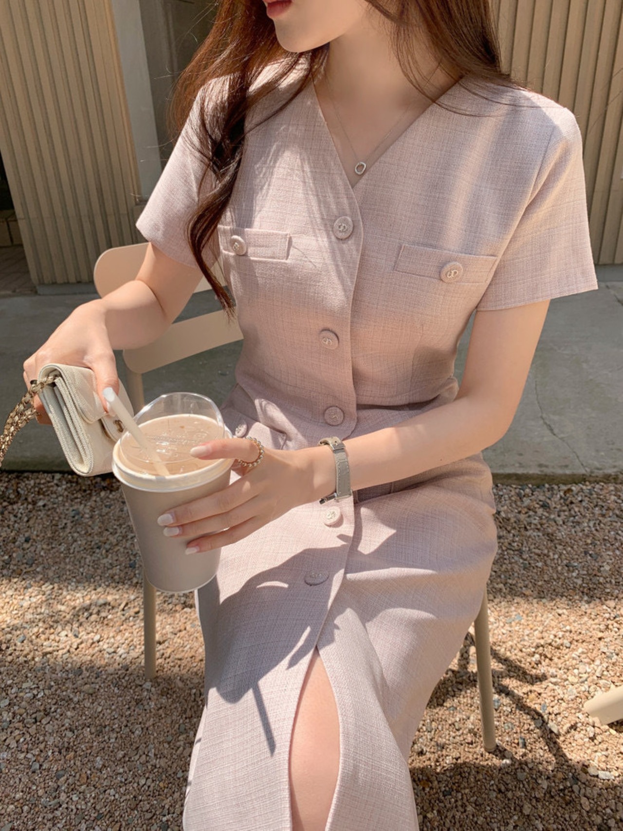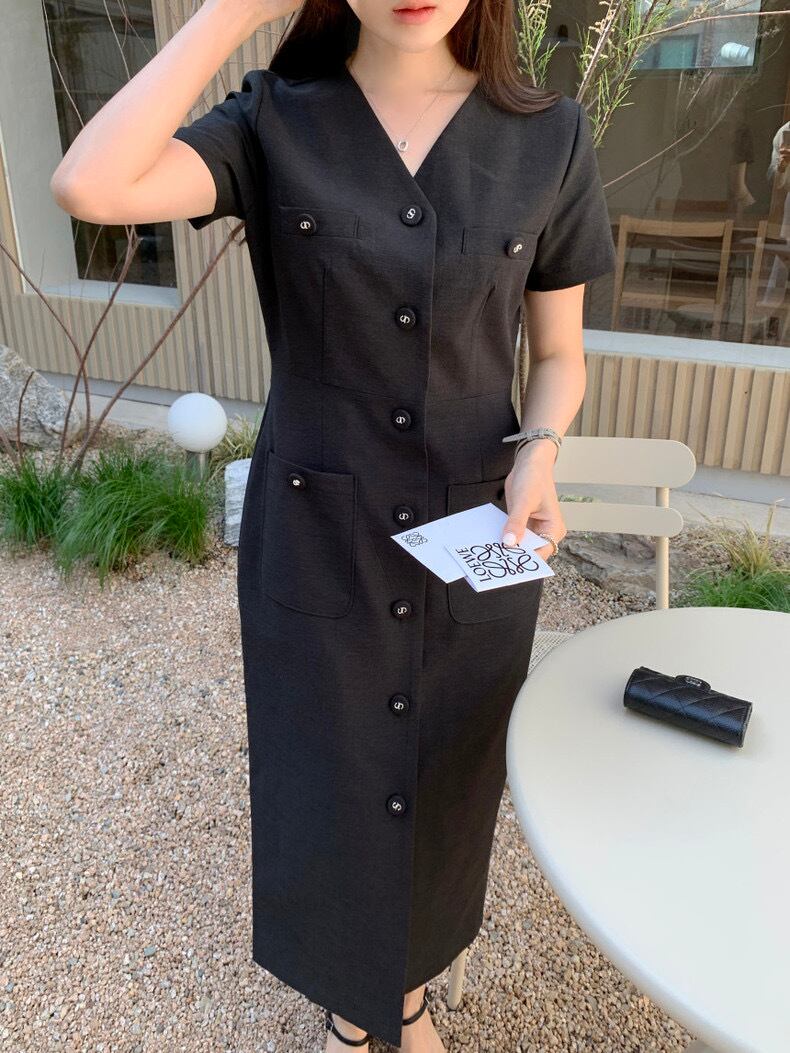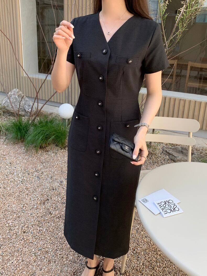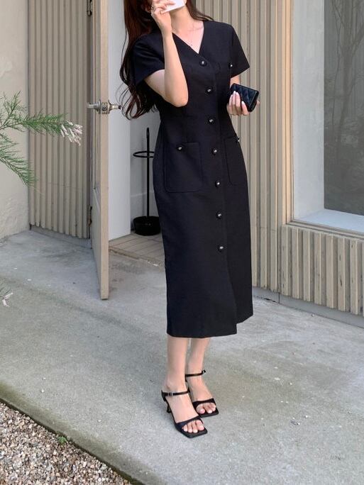 Vネックハーフスリーブワンピース