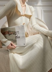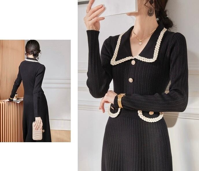 ブレード襟リブニットワンピース
