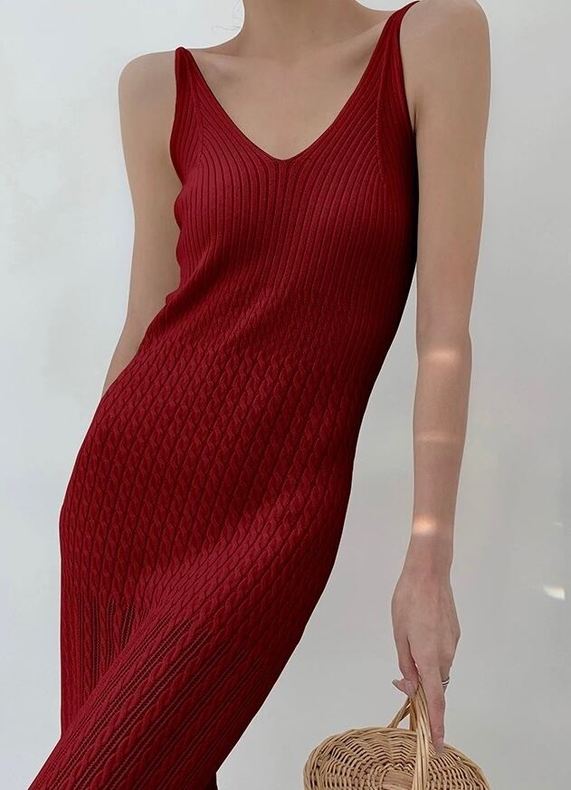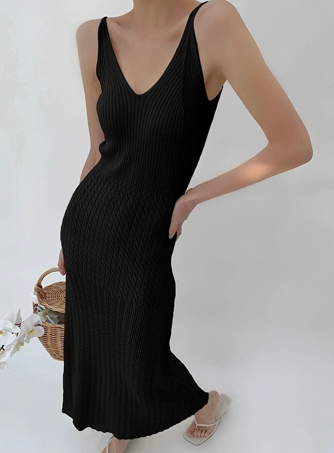 Vネック切り替えニットデザインワンピース