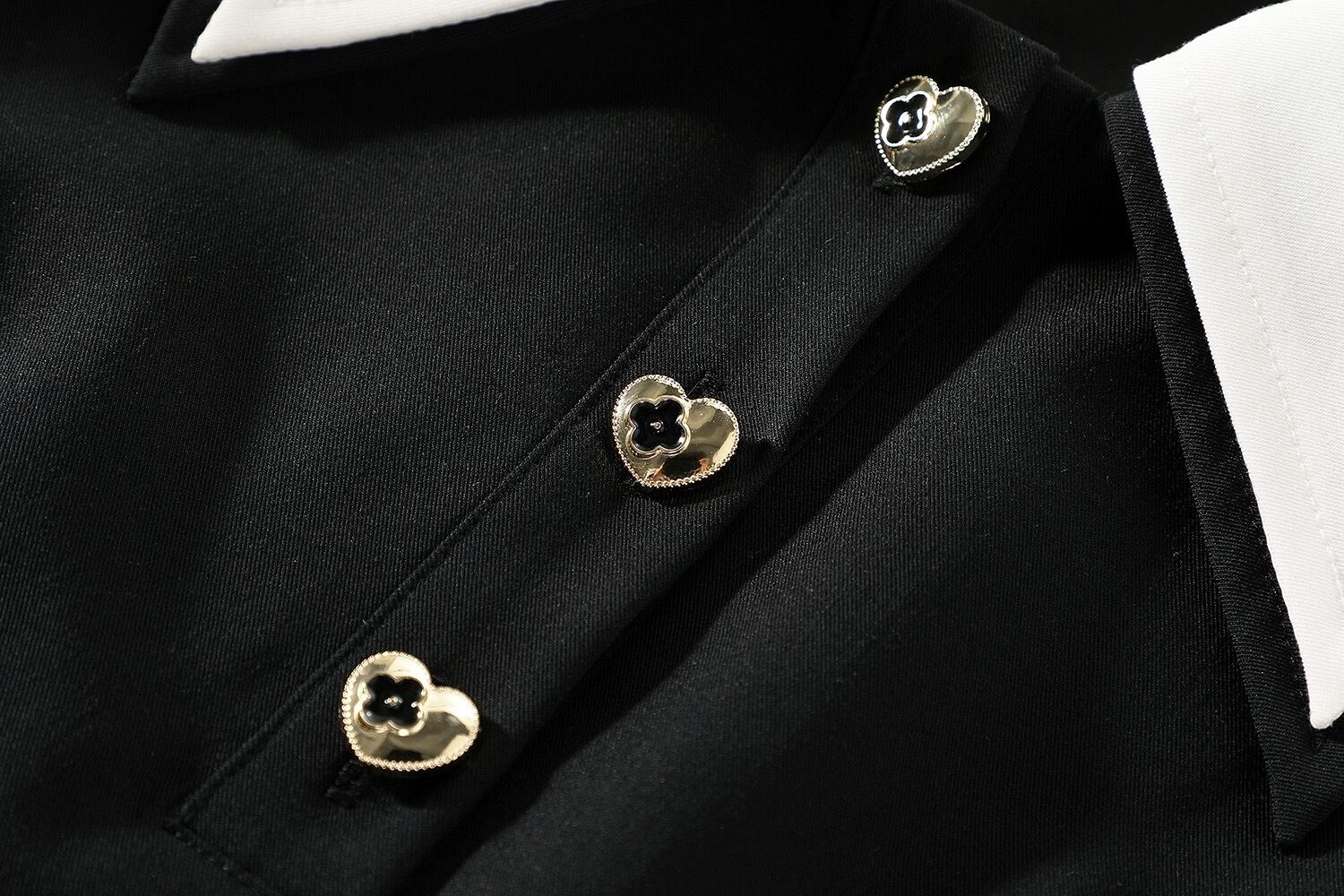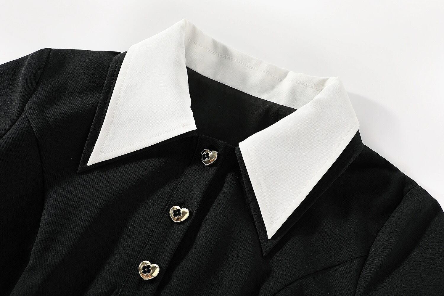 襟バイカラーハートボタンプリーツワンピース
