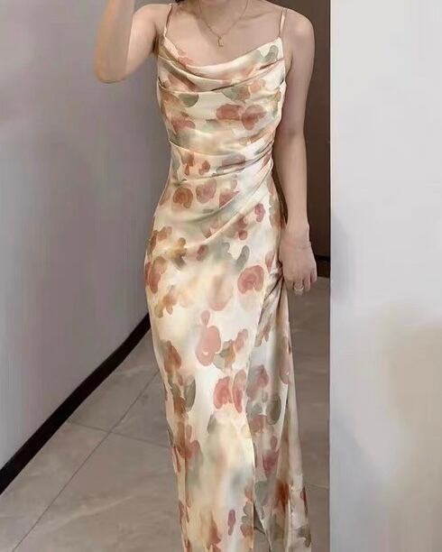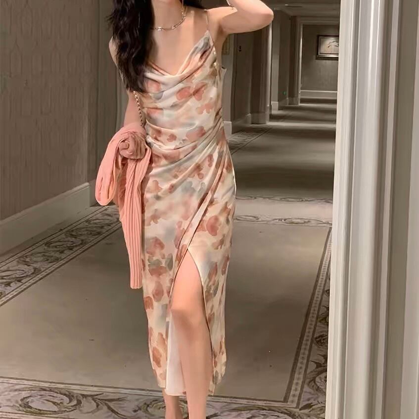 ドレープアートサテンスリットワンピース