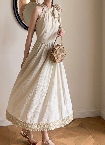 ホルターネックボウタイリボンフレアロングワンピース
