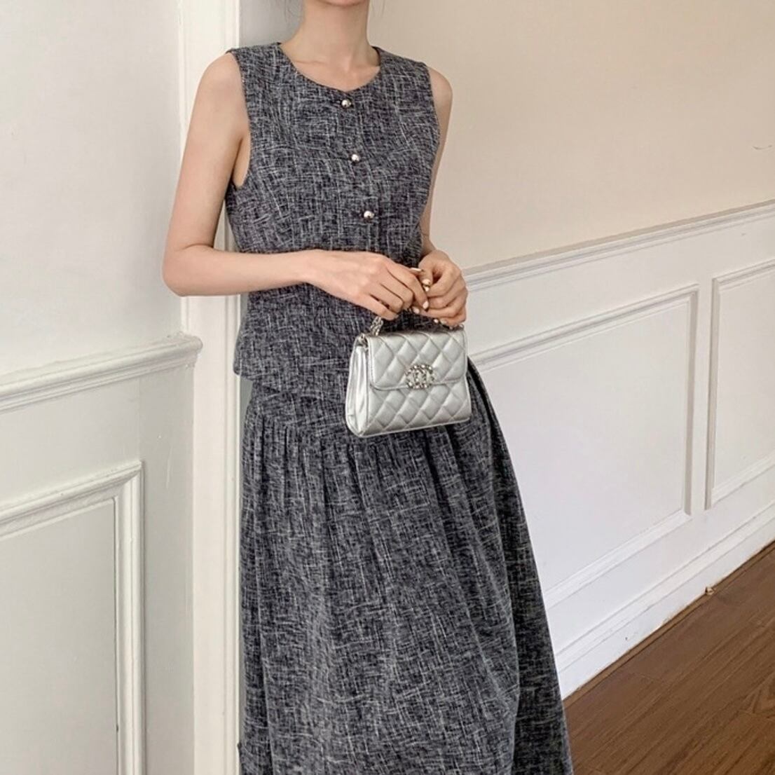 ノースリーツイードフレアスカートセットアップ