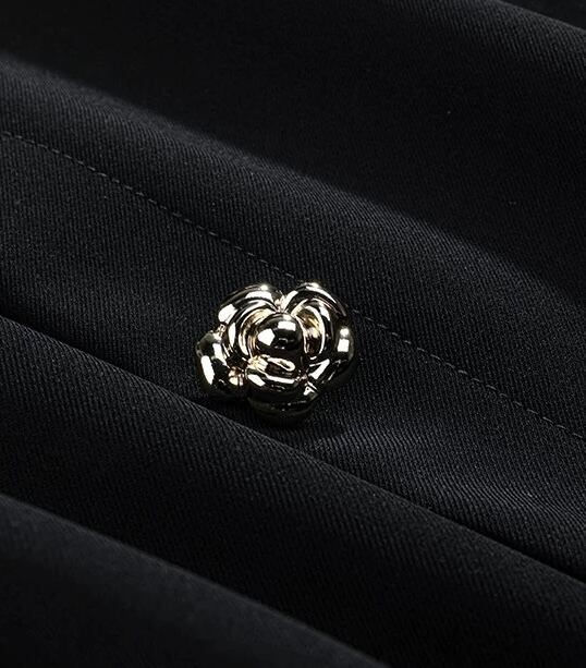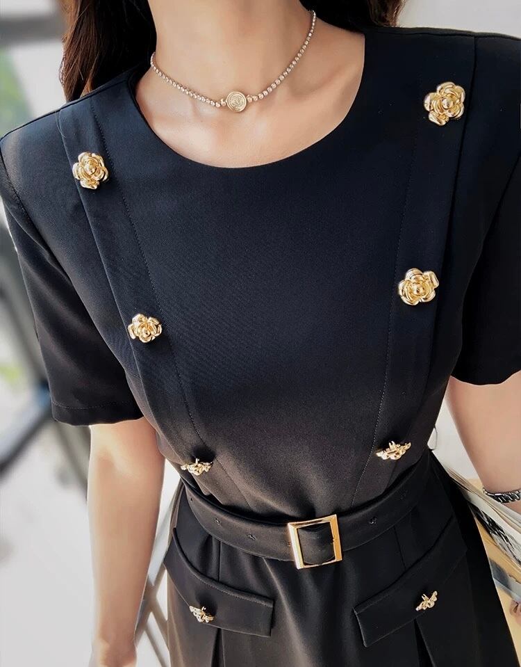 ブラックダブルボタンボックスプリーツベルトワンピース