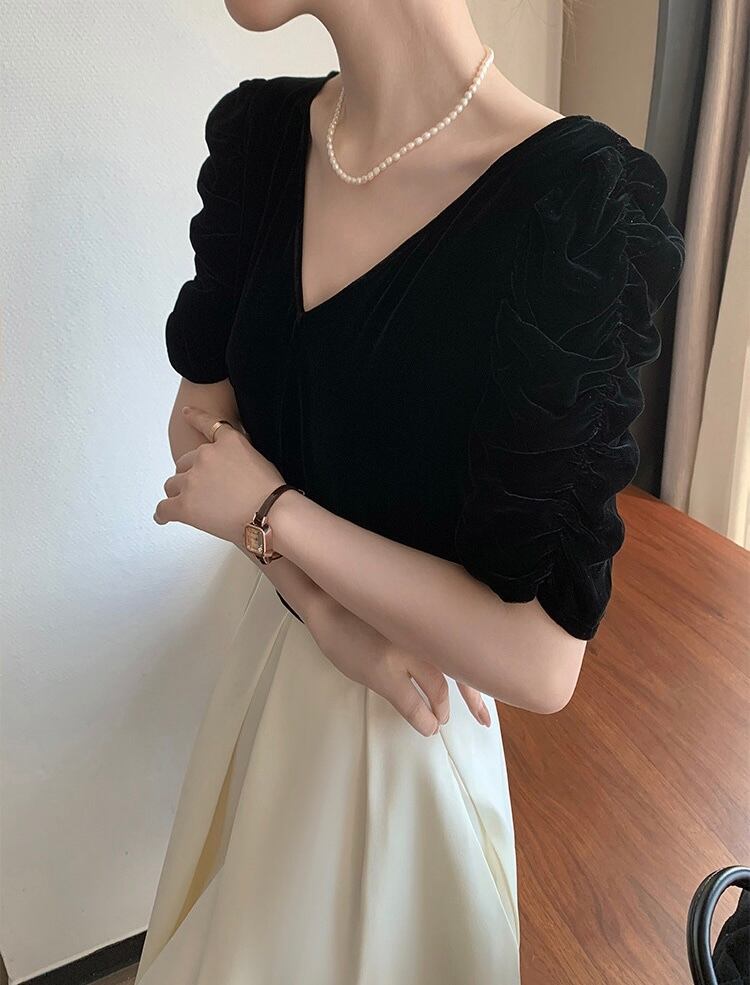 Vネックパワーショルダーブラックトップス