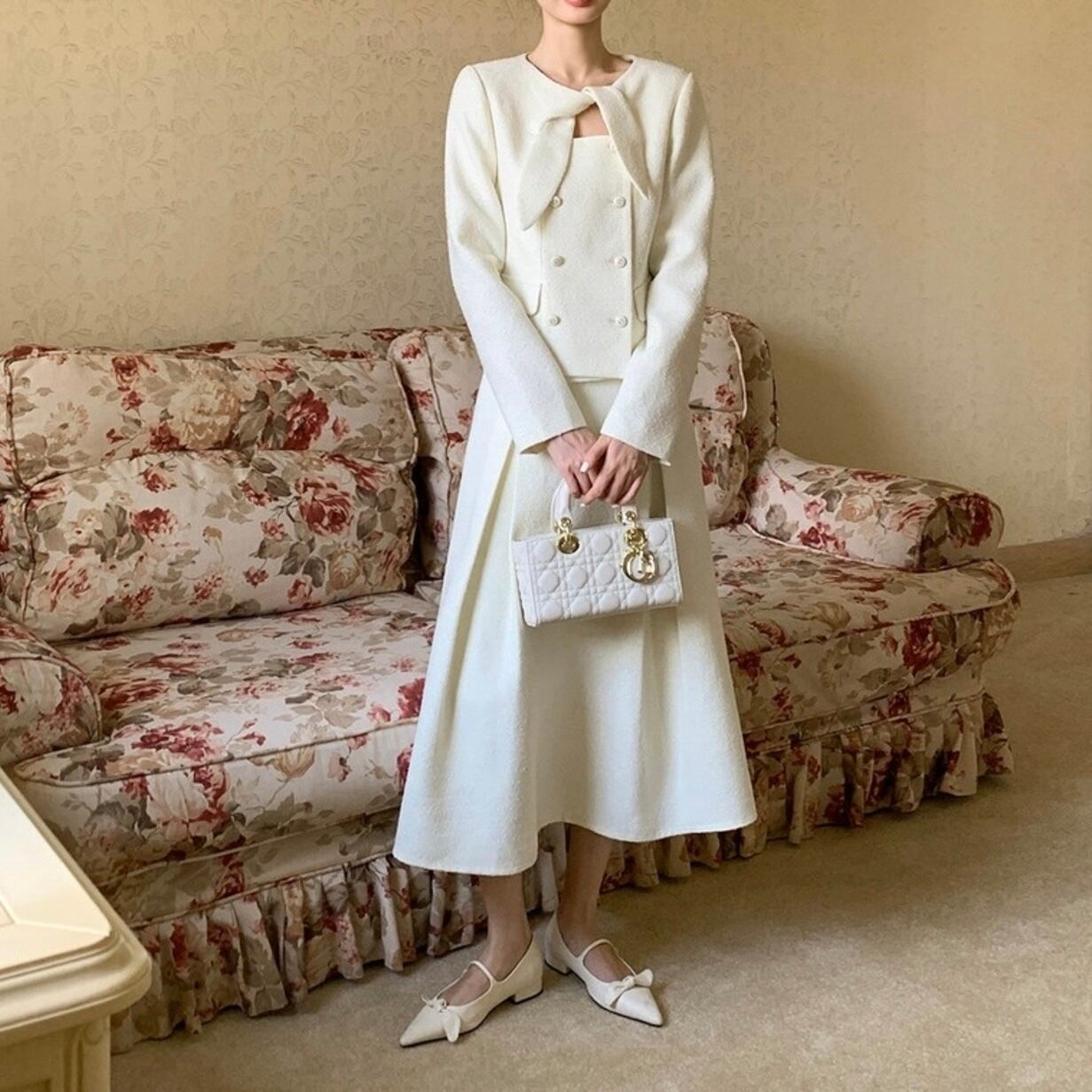 ボウタイダブルブレステッドジャケットスカートセットアップ