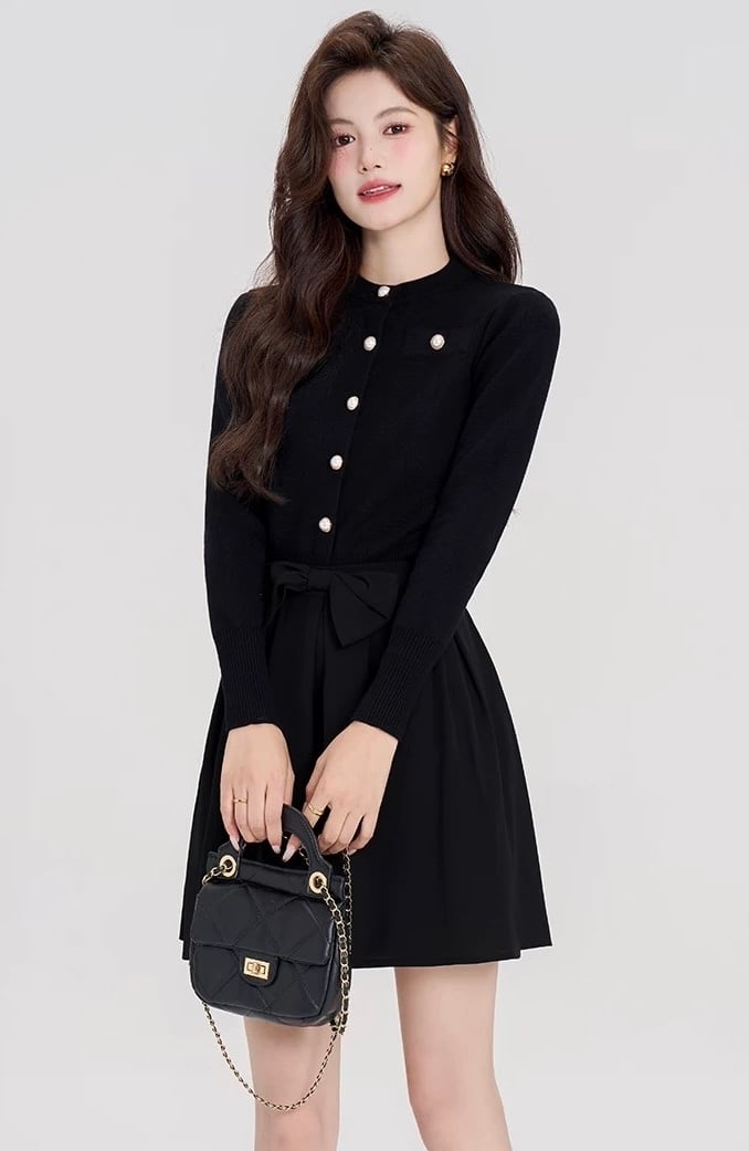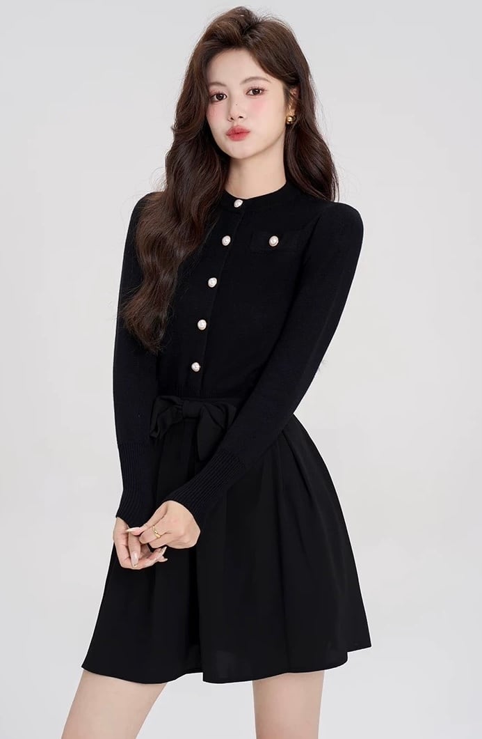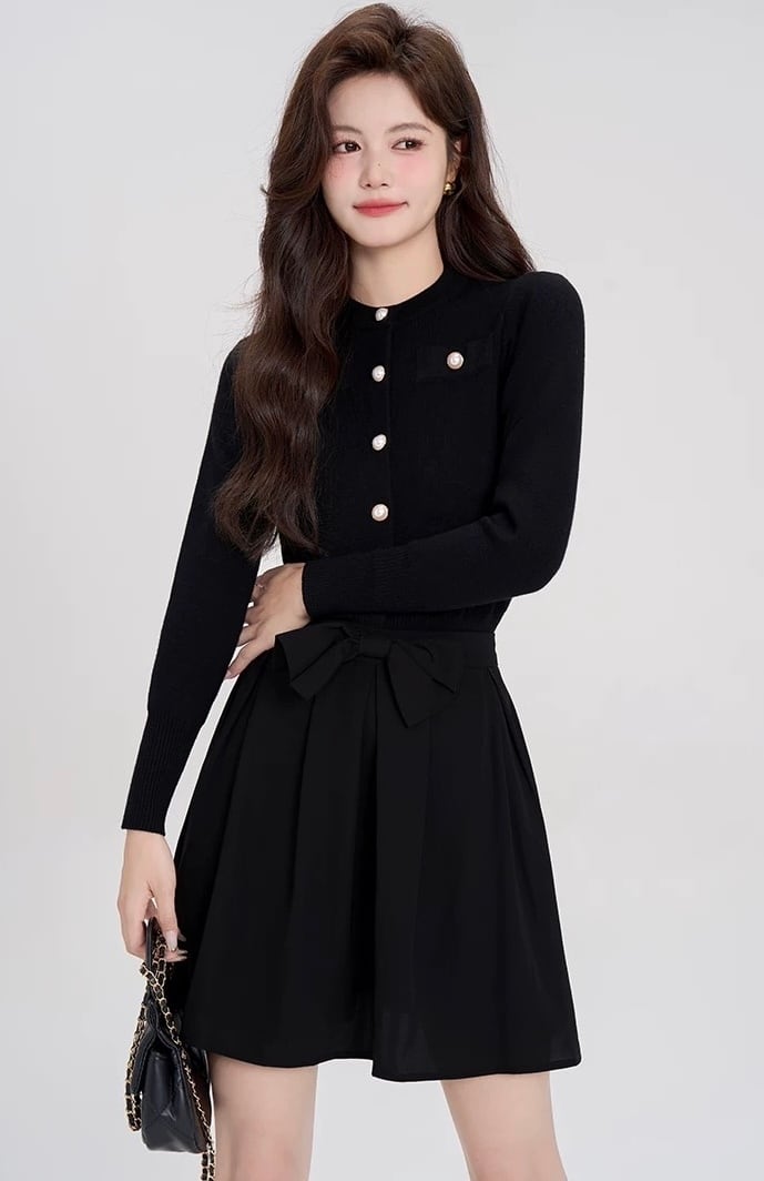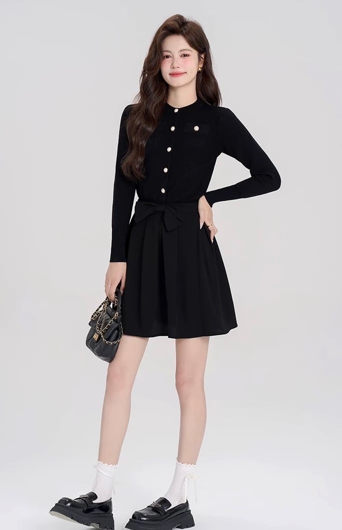 クラシックブラックカーディガン&リボンミニスカートセットアップ