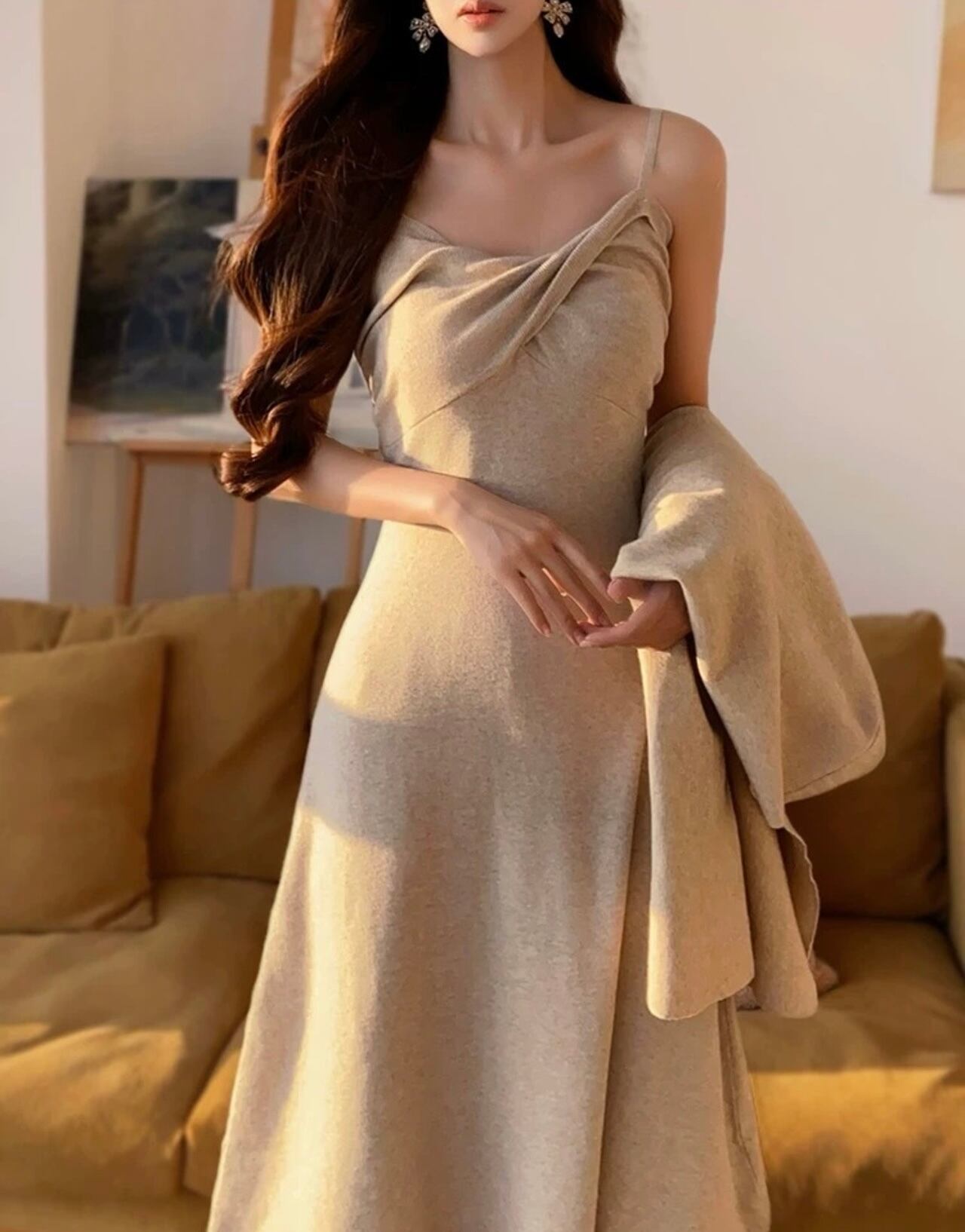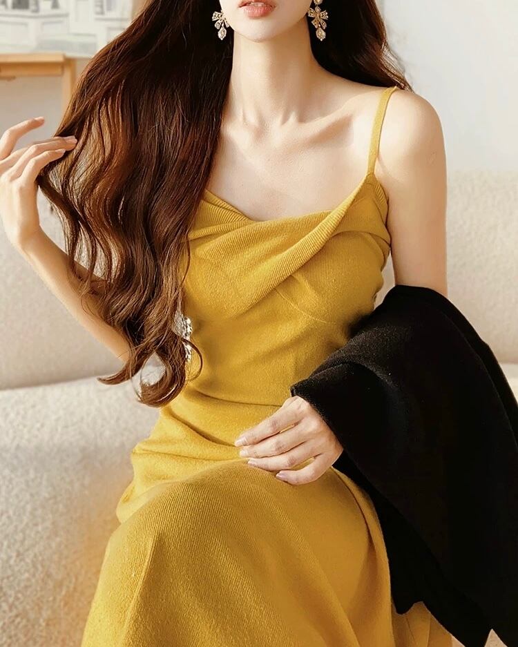ツイストキャミソールニットフレアワンピース