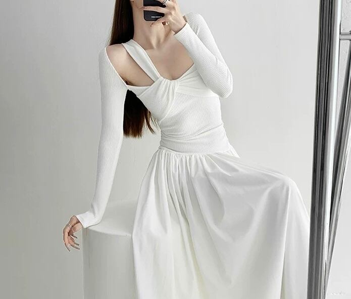 ツイストリブニットフレアワンピース