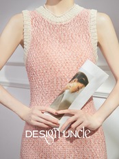コーラルピンクバイカラーニットワンピース
