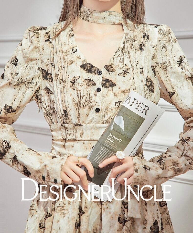 ボウタイVネックバタフライワンピース