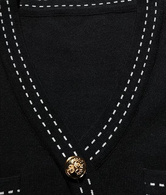 Vネックステッチブラックワンピース