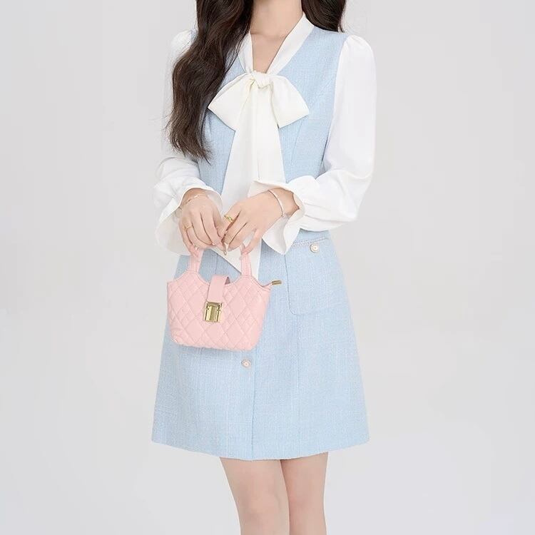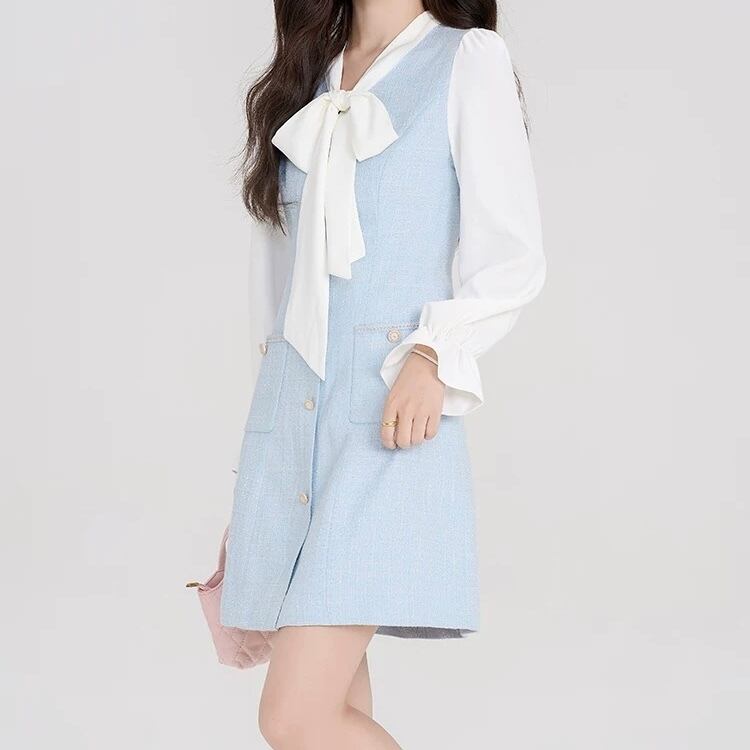 フレンチブルー棒タイドッキングワンピース