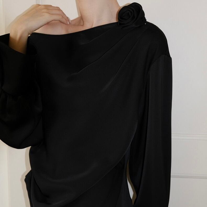 ワンショルダーローズドレープトップス